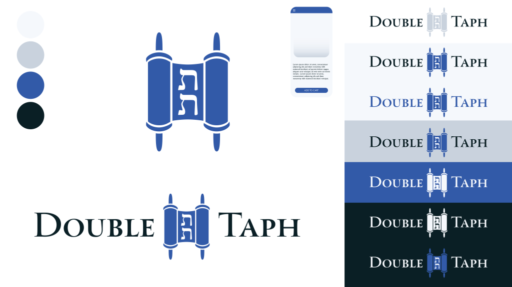 The logo was designed for Double Taph, a non-profit organization focused on bringing Torah study and religious resources to incarcerated individuals. The design combines the more classic, formal feel of a serif font and a more modern looking, geometric logo mark. Because the organization is focused on Torah studies, the imagery chosen is that of an open Torah, with two Taphs inside. The goal was to allow the logo mark to be used independently of the full combination mark, so it was important that the mark had both representative imagery and an allusion to the organization’s name.