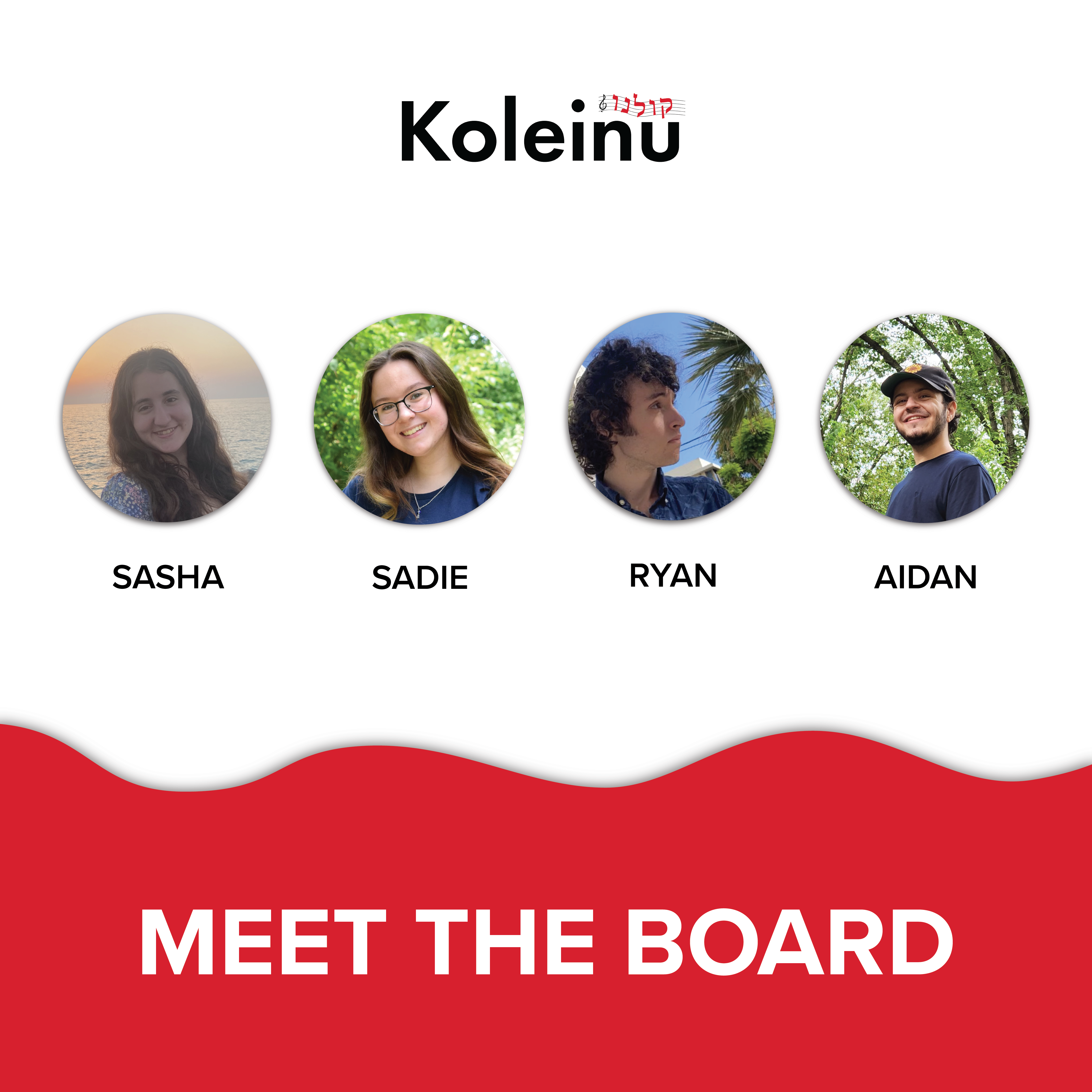 Below is a series of graphics posted to the Koleinu Instagram page to advertise various events and information about the group. The graphics follow a consistent branding, utilizing rounded rectangles, the brand colors (red, black, and white), the same font, thick outlines, and bold drop shadows. The last two slides are two of five graphics for a social media post that introduced the four board members of Koleinu, posted as a 5-slide carousel post.