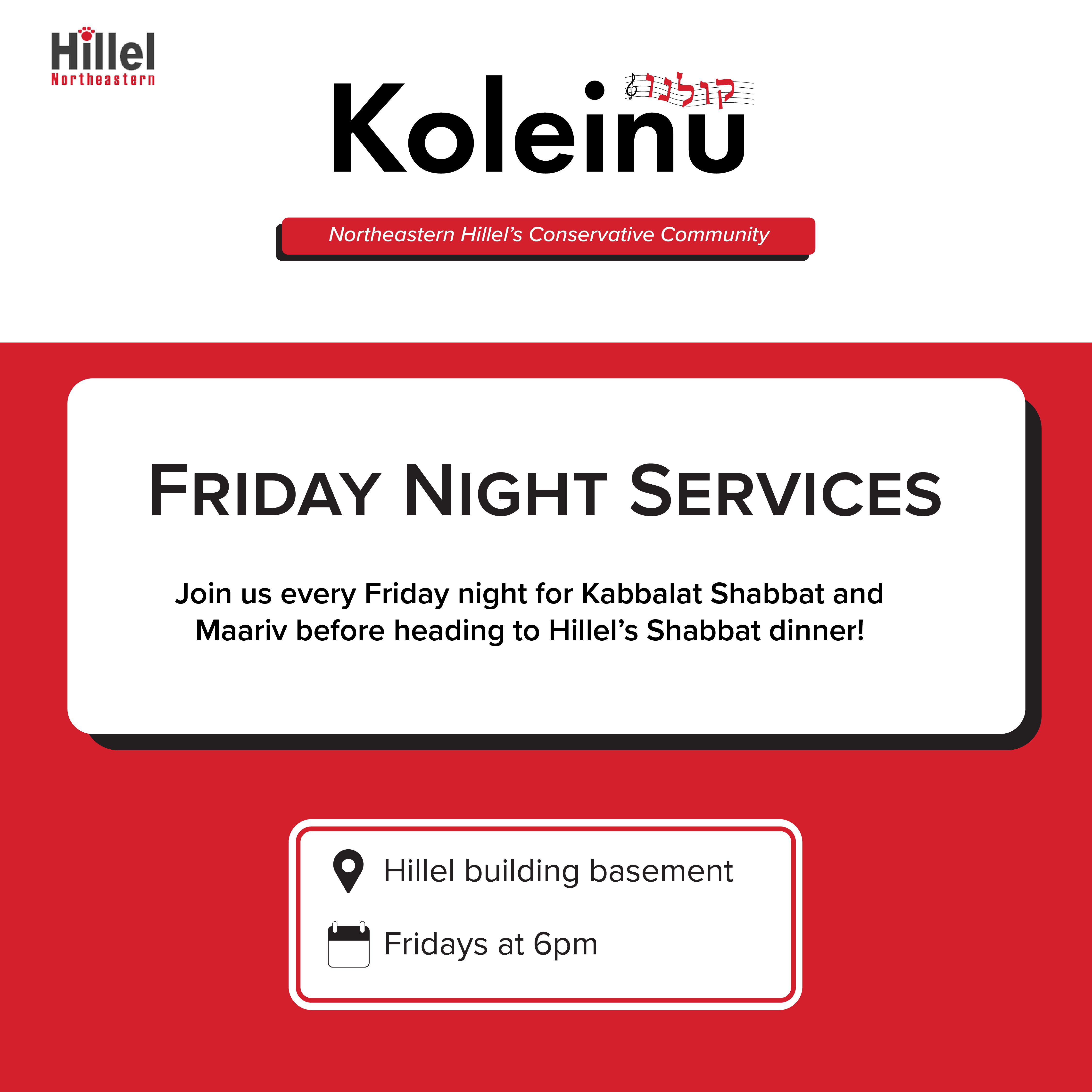 I was in charge of creating the branding and all graphics for Koleinu, the Conservative religious group in Northeastern University’s Hillel. Above is a general information flyer for the group. It is intended to explain to students, either involved in Hillel already or not, what Koleinu is and what they do. The goal is to encourage students interested in religious services to come to services or sign up to learn more and get updates. The logo in the flyer was also created by me, which you can read more about here.