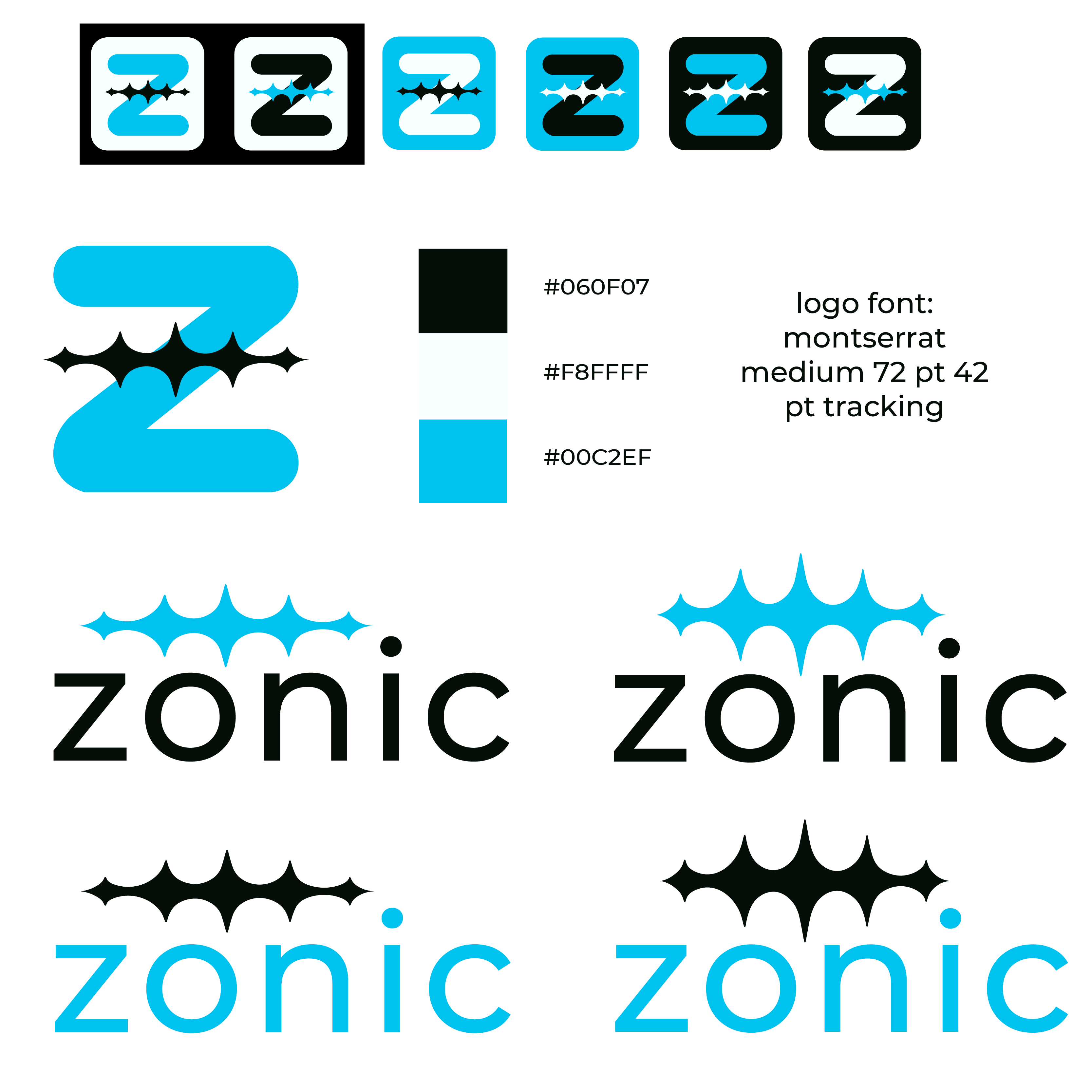 The design of a wordmark and logo for Zonic, a telecommunications startup and app that uses spatial audio to elevate the virtual meeting experience to a whole new level. Work involved selecting brand colors and seeing logo from ideation to implementation in the app and website. The design process and iterations seen below.